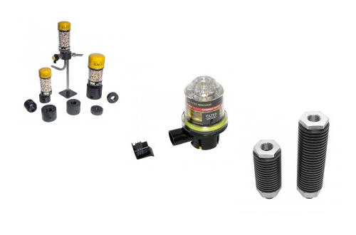 To monitor the state of the air filter, RMF Systems offers a Filter Minder (vacuum switch). The filter minder is a combination graduated indicator and switch (N/O), a yellow indicator moves up in the window and locks at the highest air filter restriction. When it reaches the red zone, or highest recommended restriction, it closes a contact and can send a signal to